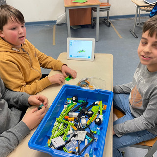 Mithilfe eines "Lego WeDo" - Bausatzes wurden zunächst in Gruppen Fahrzeuge, Satelliten, Helikopter und Roboter nach Anleitung aufgebaut. Anschließend wurden diese über Bluetooth mit Ipads verbunden und von den Kindern mithilfe einer zugehörigen Software programmiert. So erweckten die Kinder ihre Modelle zum Leben. Autos und Roboter konnten nun selbstständig fahren und bremsen, Geräusche erzeugen oder leuchten.